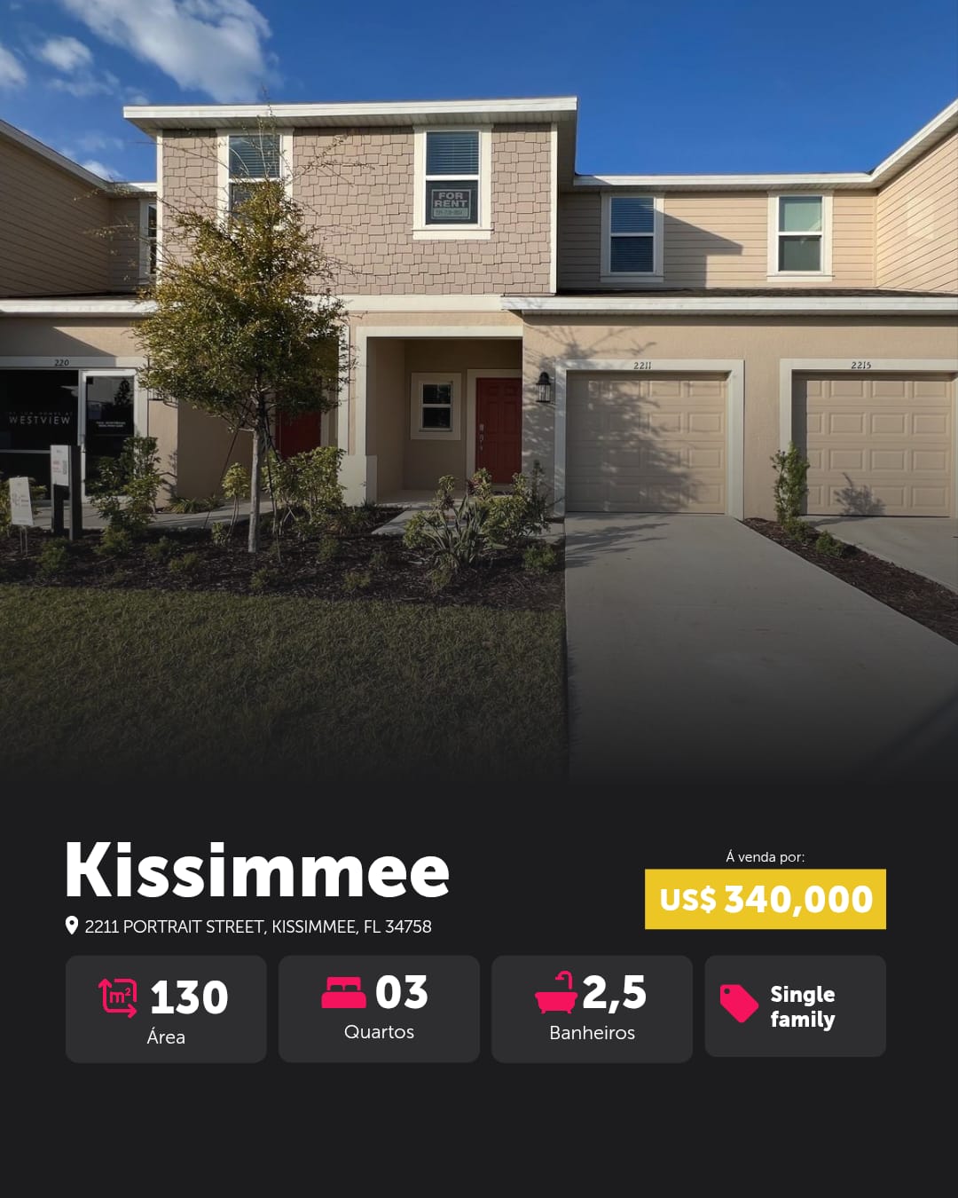 Localizada no desejado condomínio Westview, esta casa recém-construída (2023) reúne tudo o que um investidor inteligente busca: preço competitivo, localização estratégica e alto potencial para renda com aluguel de longa temporada.